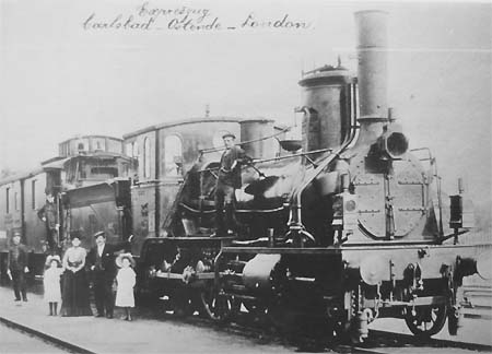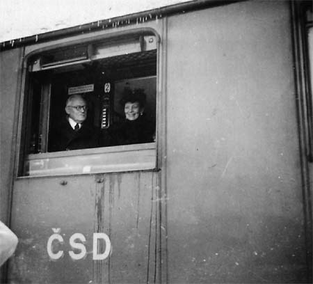 Großvater war dort vor dem ersten Weltkrieg Lokomotivfuehrer bei der kkStB gewesen, als in Karlsbad vom Oberen Bahnhof die Luxuszuege Carlsbad-Express nach Paris und nach Oostende, spaeter beide ein Teil des Orient-Express, auf der privaten Buschtehrader Bahn abfuhren. Und die Familiengeschichte erzaehlt: Bei einer seiner taeglichen Fahrten auf der kkStB zwischen Marienbad und Karlsbad fuhr er einmal mit einem Pkw um die Wette. Nach Ankunft am Unteren Bahnhof kam der Chauffeur zur Lok, und sagte mit einem Haendedruck: "Wissen Sie, mit wem sie da um die Wette gefahren sind? Mit Koenig Georg von England!"