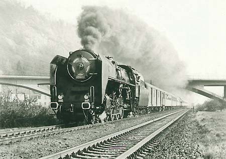 ![]() F106 Orient-Express, CSD 555.0, ex-DR 52, SNCF fourgon Praha - Paris, PKP Warszawa - Paris, CIWL WL Warszawa/ Praha - Paris, Schirnding 1953 (Gottfried Turnwald) |