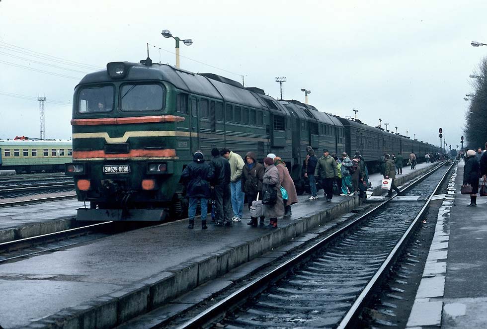 Train 101 Kaliningrad - Moscow, class 2M62U, Klaipeda (the former Memel), April 1992 (WS)