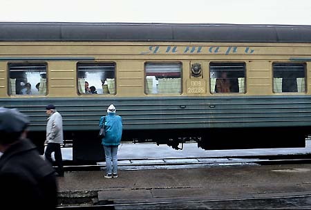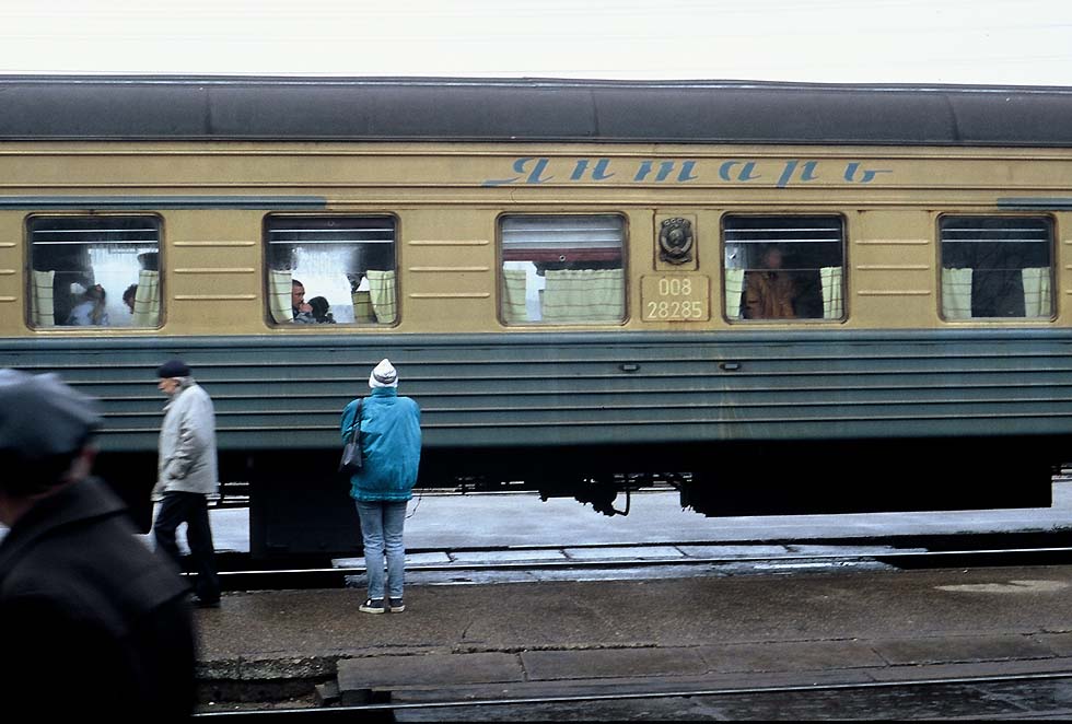 Train 101, "hard" car originally for express Yantar, Klaipeda, April 1992 (WS)