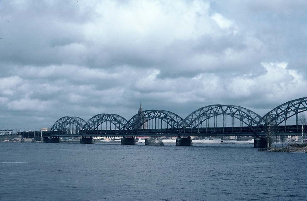 Daugava bridge and train 258 Riga - Baranovichi - Lvov, Riga 1992 (WS)
