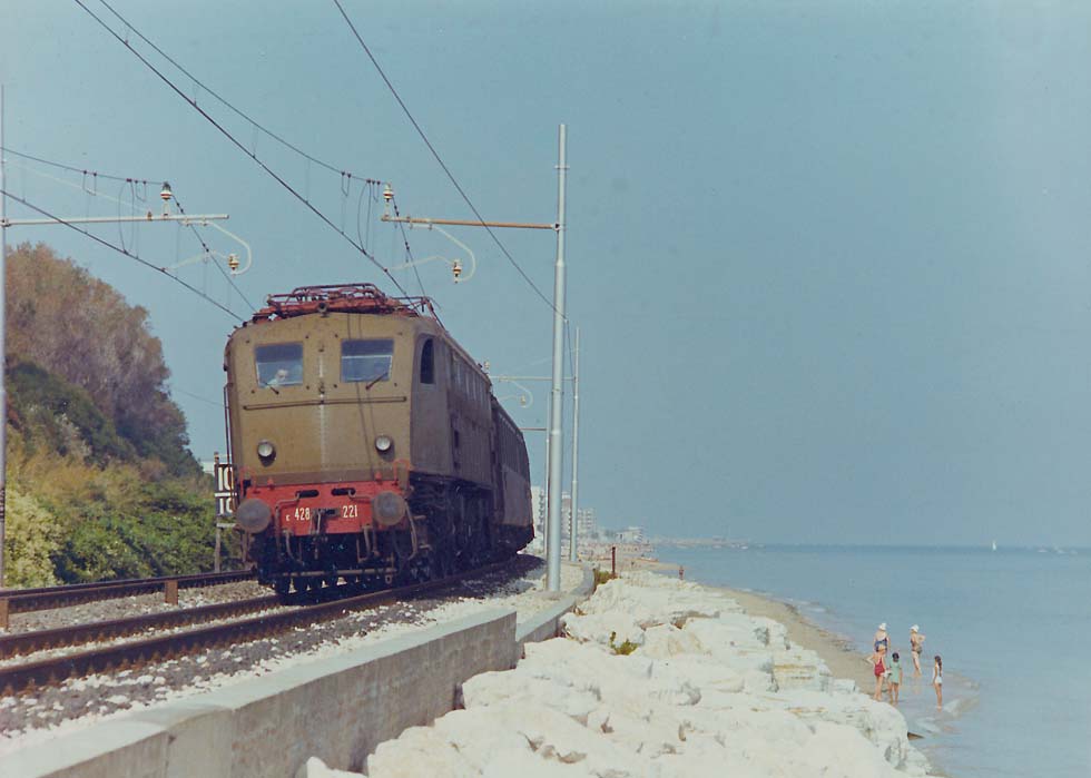 Direttissimo Paris - Simplon - Brindisi Marittima, FS E428, Pesaro 1970 (Wilhelm Tausche)