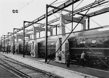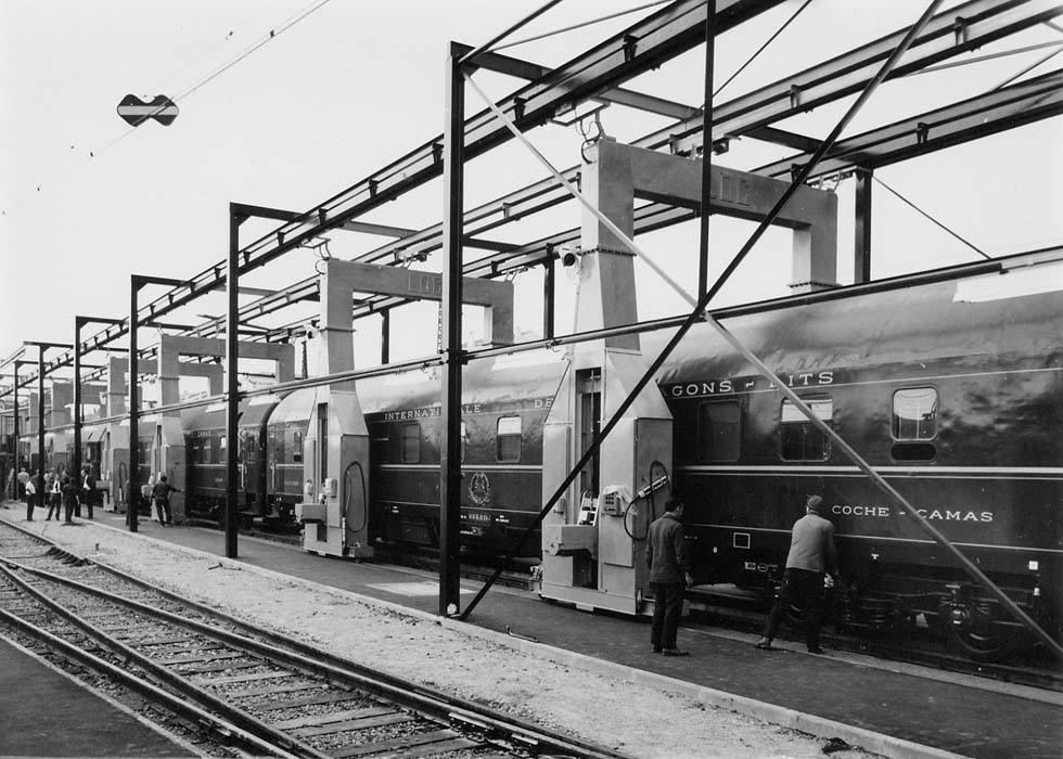 Puerta del Sol, CIWL sleepers UH changing gauge at Hendaye (SNCF)