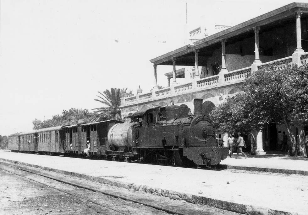 Tripolitanian railways, mixed train at Tripoli station under British rule in 1944 (General K.R.M. Cameron)
