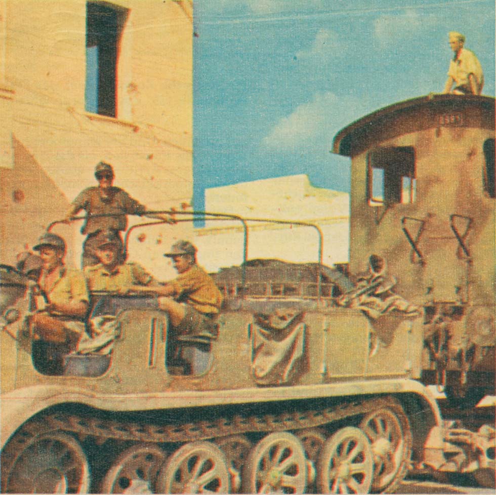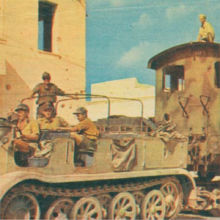 A German war diesel engine being transported from Tobruk harbor to the "Achsenbahnhof" of Rommel's supply line Tobruk - Marsah Matruh (contemporary press)