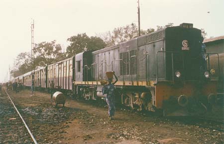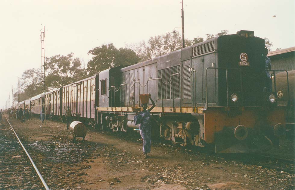 Express Bamako - Dakar, Alsthom engine BB1601 of SNCS and pre-war cars in Senegal, spring 1979 (Waldemar Gruebl)