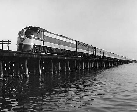 Panama Limited with E9 class on the bridge over Pass Manchac in the 60's (Illinois Central)