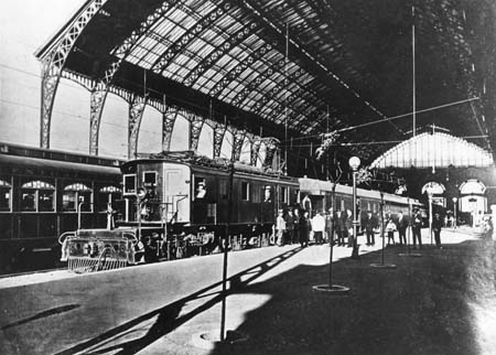 Inauguration of electrification on the Santiago - Valparaiso line, locomotive 2806 from Baldwin-Westinghouse, at Santiago Mapocho on October 10, 1924 (official photograph/ coll. Dietrich Angerstein)
