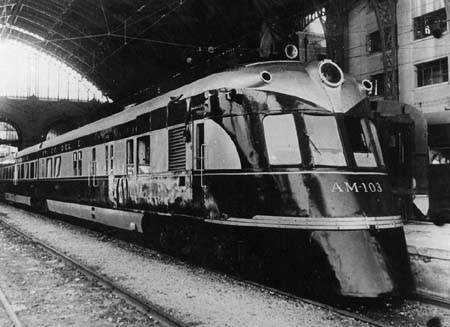 Express three-car diesel unit AM-103 from MAN with dining room, at Santiago Mapocho c.1950 (FF.CC. del E./ coll. Dietrich Angerstein)