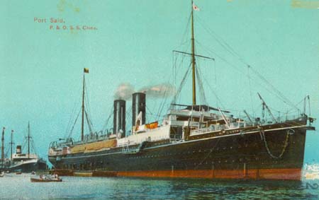 "China" of 1896, P&O, at Port Said (old card, coll. WS)