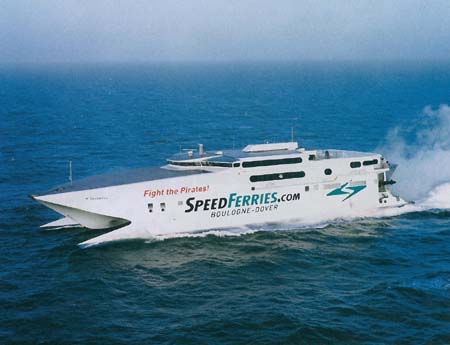 In 2004 SpeedFerries started 'fighting the pirates' between Dover and Boulogne with the wavepiercer catamaran "SpeedOne" (ex "Incat 045", "Jervis Bay"), stopped in 2008. LD Lines created a sensation in 2009 with the "Norman Arrow", a chartered 112m InCat, the most advanced wave-piercing catamaran for a speed of 44 knots, with 800 lanemetres for truck and car transport. In 2010 she was transferred to Portsmouth - Le Havre, after Euroferries tried to enter Ramsgate - Boulogne.