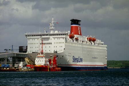In December 1962 Sten A. Olsson had founded the Skagenlinjen, starting a ferry service from Gothenburg to Denmark with four vessels, bought second-hand. Re-named Stena Line, the company opened the Kiel - Gothenburg route in 1966 and swallowed in 1981 its competitor Sessan Linjen and also Lion Ferry. Four 25,000-ton ferries had been ordered in Poland, but due to political troubles only two of these 'Jumbo' ferries, the "Stena Germanica" and "Stena Scandinavica", were delivered in 1987, introduced on the Kiel route, later extended to a gross tonnage of c. 39,000 (the third ship became the "El. Venizelos" of ANEK and the fourth should have become the cruise ship "Regent Sky", but remained uncompleted). TT-Line of Germany, founded in1962, entered the age of the jumbo ferries with a new "Peter Pan" (31,356 gt), introduced in 1986 on the Travemuende - Trelleborg route (in 1993 changed to Australia as "Spirit of Tasmania", in 2003 to the Fjord Line as "Fjord Norway"). In 1993 followed the fourth and in 2001 the fifth "Peter Pan", a ro-pax of 36,468 tons, together with the "Nils Holgersson" on the Travemuende - Trelleborg route. DFDS started in 1982 an unlucky attempt with a cruise-ferry, the 26,747-ton "Scandinavia" of its subsidiary Scandinavian World Cruises (in 1990 she became the "Viking Serenade" of Royal Caribbean). Unsuccessful was also the Travemuende service of Euroway with the "Frans Suell" (1992 / 35,285 gt), in 1994 rebuilt as "Silja Scandinavia". For the development of Color Line see chapter North Sea. A matter of its own were always the train ferry services - see the relevant chapter - amalgamated in the 90s into Scandlines, concentrating more and more on freight and car ferry services. Facing a setback of Baltic Sea shipping due to the economic crisis, Scandlines and TT-Line decided in 2009 for a close cooperation. The steadily growing Stena Line had bought already in 1990 Sealink from the Sea Containers Group (compare chapters Irish Sea and Channel). The "HSS Stena Carisma" and the "SuperSeaCat One" operated on the Gothenburg - Frederikshaven route (see Schiffahrt international 1999). Stena Line, engaged on various routes and managed by the son of founder Sten A. Olsson, targeted the future market with large ro-pax ferries.
