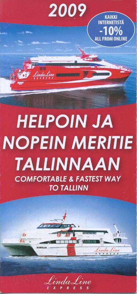 The distance of only 48 nm between Helsinki and Tallinn has invited to introduce hi-speed services, connecting the two capitals in 100 minutes. Estonian New Line already had Kometa-type hydrofoils for Helsinki - Tallinn services. In 1994 the hydrofoils "Liisa" and "Laura" for 200 passengers were introduced under the Tallink Express brand, around 1996 sold to Linda Line. In 1997 Tallink introduced the catamaran "Tallink Express I", then the "Tallink Autoexpress" (ex "Cat-Link III") and in 2001 the catamaran "Tallink Autoexpress 2" (1997/5,307 gt). In 2004 followed the monohulls "Tallink Autoexpress 3" and 4, both of the 3,971-ton MDV1200-type of Fincantieri, (ex "Pegasus Two" and One), in 2007 sold to Arab Bridge Maritime as "Queen Nefertiti" resp. Aegean Speed Lines as "Speedrunner II". With only 90 minutes travelling time, the "Baltic Jet" and "Nordic Jet" of Nordic Jetline were even a little faster. During the icy winter season however, this company transferred its catamarans to FRS, operating in the Strait of Gibraltar, and in 2009 the Baltic route was abandoned.