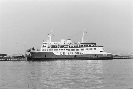 Already from the 1920s some train ferries had been equipped to carry motorcars, too. In the 50s Cook's timetable mentioned also the motor ferry "Peter Wessel" (of 1937), carrying 620 passengers and 70 cars, of A/S Larvik-Frederikshavnferjen. Some ships carried motorcars, being loaded by crane. With the jet age, international rail passenger traffic did almost completely disappear towards the end of the 20th century and the car ferries are dominating the market. Among the early car ferries, built in the late 50s (listed by Curt Frick), were the "Prinsessan Christina" of Sessan Linjen, the "Skagen" of the Kristiansand Dampskipsselskabet and the "Gripen" of Svenska Rederiaktiebolaget, all employed in the seas surrounding Denmark. Listing all the companies and their significant ships would go beyond that survey. One smaller Swedish company however should not be failed to notice: It's Linjebuss or LB, which provided, apart from car ferries Helsingborg - Helsingoer, in the 50s 1st-class bus lines to Rome, Nice and Paris. For the history of all the Baltic Sea routes, including short-haul, the extensive literature is recommended, e.g. 'Faehrschiffahrt der Welt' by Kai Ortel / Horst-Dieter Foerster, 'Baltic Ferries' by Bruce Peter (Ferry Publications, Ramsey 2009), the German magazines 'Schiffahrt international' and 'Ferries', the Web sites wikipedia.org and other ones.