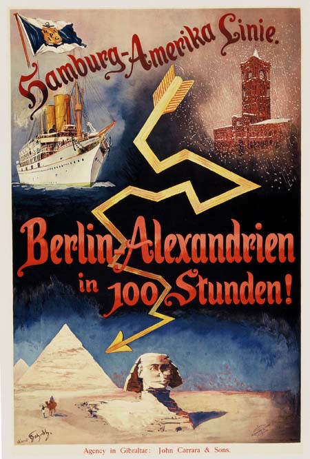 In 1905 Hapag participated in the Anglo-American Nile Steamers & Hotel Co., which then changed its name into The Hamburg & Anglo American Nile Co. In 1906 a seasonal fast line Naples - Alexandria was opened. Cruises of the "Prinzessin Victoria Luise" had been succeeded by services with the "Oceana" (7,815 gt, ex "Scot" of Union Castle), but in winter 1907/08 she was withdrawn in favor of a cooperation with a new enterprise. Ships Monthly (Nov.2010) described it as "the Egyptian Mail Steam Ship Co., which operated between Marseilles and Alexandria (...) and, within a year of beginning steamship operations, it had closed down, and its two brand new vessels, "Cairo" and "Heliopolis", had been laid up in December 1908." With almost 12,000 tons and a speed of 19 knots, the ships proved uneconomic for this route and they were sold to the Royal Line of Canada for North Atlantic services (see the relevant chapter). In January 1907 started a seasonal CIWL de-luxe train Aegypten-Express Berlin - Naples in combination with the Nord-Sued (Brenner)-Express and under contract with Hapag, connecting at Naples with the steamers. From 1910 (according to railway historian Dr. Albert Muehl) connection was with NDL, until 1914. Norddeutscher Lloyd had in 1904 introduced a Barcelona - Marseilles - Naples - Alexandria service.