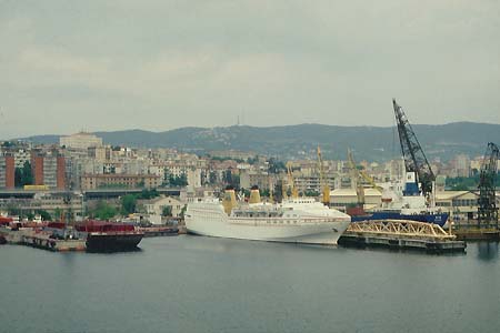 Egypt under President Sadat concluded the peace treaty with Israel in 1979. From that time it was combated by extremists, culminating in the attack on the cruise ship "Achille Lauro" in 1985. In the last decade of the 20th century, passenger shipping and car ferries have virtually disappeared from the utmost southeast of the Mediterranean. For Adriatica, the ferries "Palladio" and "Sansovino" (10,977 gt) were built in 1989, announced for a seasonal Venice - Alexandria service. Cook's timetable however showed no longer any passenger ferry route to Egypt, Israel or Lebanon. Adriatica's "Egitto Express" was employed temporarily on Tirrenia's Ancona - Split route, state-owned like Adriatica, which disappeared.