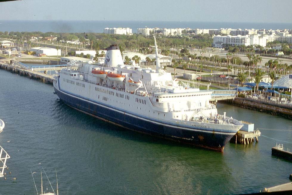 After the jet airliners' victory over the classic ocean liners, ABC Shipping Guide listed at the end of the 70s the Bahamas Hydrofoil Cruises between Miami and Nassau, where once the Peninsular & Occidental steamers had operated regularly. Home Lines offered a New York - Bermudas - Bahamas service with the "Doric" (1964/ 17,884 gt, ex "Shalom", "Hanseatic") and the "Oceanic" (1965/ 27,645 gt). The Commodore Cruise Line chartered for quasi-regular services Miami - St. Thomas - San Juan the "Boheme" (1968/ 9,866 gt) and the "Caribe" (1968/ 10,488 gt, ex "Freeport", "Svea Star"). She became in 1994 the "Discovery Sun" of Discovery Cruise Line. In 1982 Scandinavian World Cruises introduced the 26,747-ton car ferry "Scandinavia" on the New York - Bahamas route. More and more however those services changed to pure cruises and the surviving regular services are the Bahamas Ferries inter-island links of the Bahamas Port Authority. In 1991 Sea Containers bought the car ferry "Fedra" of Minoan, the former "Peter Pan" of TT-Line, for a service Florida - Mexico, but it was not possible to find any confirmation by Cook's timetables. More modest, but nice for tourists, are the services between Miami, Key West and Fort Myers by Key West Express.