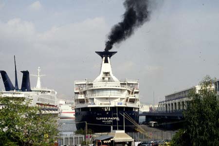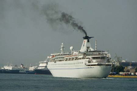 Peace Boat “Clipper Pacific”, the former “Song of Norway” of Royal Caribbean, at Piraeus in 2008 (WS)